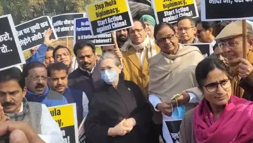 New Delhi : 12 विपक्षी दलों के सांसदों ने चीन सीमा विवाद पर बुधवार को संसद परिसर में गांधी प्रतिमा के सामने प्रदर्शन किया। सांसदों ने सरकार मांग की है कि तवांग झड़प मामले में संसद में विस्तार से चर्चा हो। सोनिया गांधी और मल्लिकार्जुन खड़गे भी मौजूद रहे।