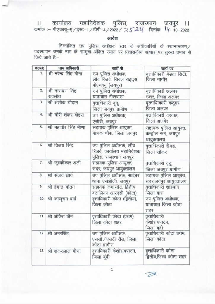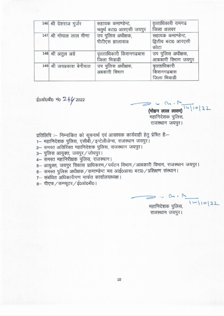 राजस्थान में 149 RPS के तबादले Breaking-News Rajasthan Friday, 14 October 2022, 20:23Friday, 14 October 2022, 20:31Bharat 360 ReporterLeave a Comment on राजस्थान में 149 RPS के तबादले आज शाम पुलिस महानिदेशक एमएल लाठर ने 149 पुलिस उप अधीक्षकों के तबादला आदेश जारी किये। .