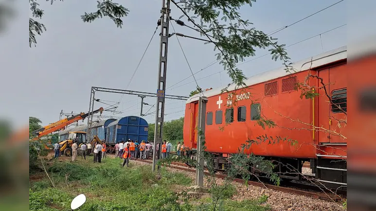 अलवर:-अलवर शहर के मथुरा ट्रैक पर बने अलवर गुड्स स्टेशन से रेवाड़ी जाने वाली एक मालगाड़ी के तीन डिब्बे मथुरा ट्रैक पर पटरी से उतर गए, जिससे मथुरा अलवर ट्रैक पर चलने वाली गाड़ियां प्रभावित हुई हैं. इस घटना के जांच के आदेश दिए गए हैं कि आखिर में यह मालगाड़ी पटरी से कैसे उतरी. अलवर-मथुरा रेलवे लाइन को सुचारू करने के लिए बचाव और राहत कार्य तेजी से किए जा रहे हैं.
