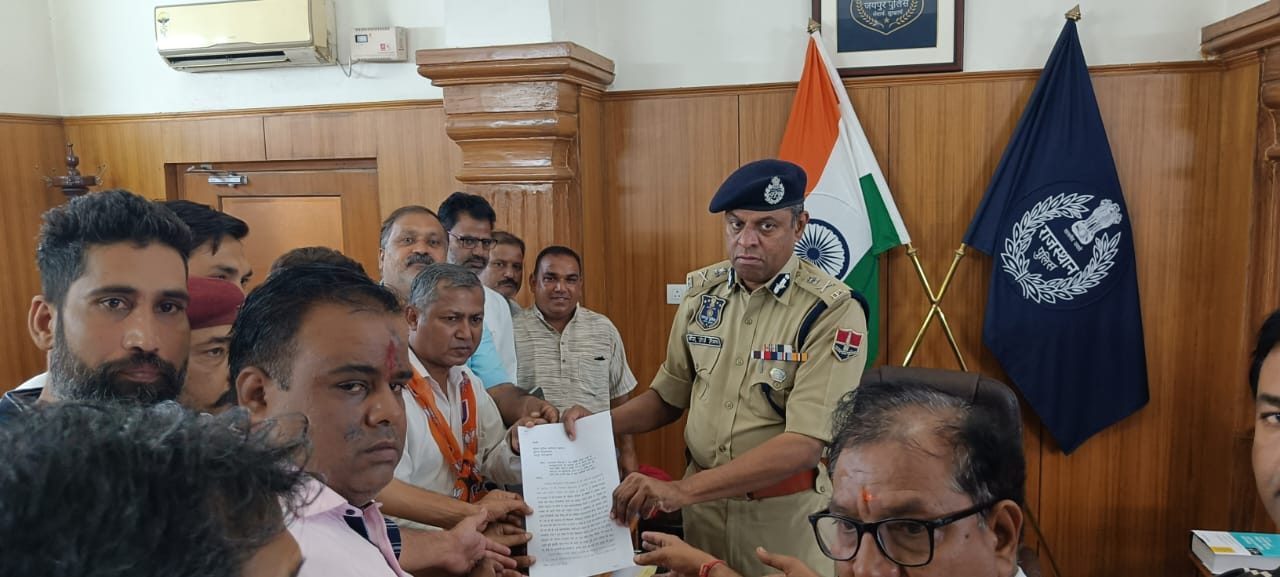जयपुर:-हवामहल विधानसभा क्षेत्र के मंडल अध्यक्ष व पार्षदों के द्वारा हवामहल विधायक स्वामी बालमुकुंदाचार्य महाराज को सोशल मीडिया पर गलत कमेंट करने व धमकी देने वाले असामाजिक तत्वों पर कार्यवाही करवाने हेतु जयपुर पुलिस कमिश्नर बीजू जॉर्ज जोसेफ को ज्ञापन दिया गया!मंडल अध्यक्ष ने बताया कि हवामहल विधायक स्वामी बालमुकुंदाचार्य महाराज, होने के साथ-साथ अखिल भारतीय सत्त समिति के आध्यक्ष भी है. जिनको दिनांक 01.10.2024 व 02.10.2024 को सोशल मीडिया के माध्यम से अपमान जनक संदेश और अभद्र टिप्पणीयां करने का मामला सामने आया है। जिससे एक विशेष समुदाय के लोगों के द्वारा साम्प्रदायिकता फैलाने व आध्यात्मिक, धार्मिक आस्था को खत्म करते हुये राष्ट्रीय एकता व अखण्डता को नुकसान करने वाली टिप्पणीयाँ, तथा हिन्दू धर्म कि धार्मिक भावनाओं को आहत किया जा रहा है। जब से महाराज जी विधायक हवामहल निर्वाचित हुये हैं, तब से लेकर के आज तक आये दिन जान से मारने व गोली से उड़ाने की धमकीयां लगातार दी जा रही है, कई असामाजिक तत्वों द्वारा वाहन का पीछा करना व फोन पर धमकीयां देना व इस संबंध में स्वयं विधायक महोदय द्वारा भी बार-बार पुलिस प्रशासन को अवगत करवाया गया है। इन सभी गंभीर विषयों, को ध्यान में रखते हुये इनकी जान-माल की हानि को देखते हुये इनके परिवार के साथ भी कभी भी अनहोनी हो सकती है, इनको स्वयं को वाई प्लस सुरक्षा दी जाये। जिसके परिणाम स्वरूप प्रदेश में अशांति का वातावरण उत्पन्न कर सकती है!इसे दौरान जलमहल मंडल अध्यक्ष कैलाश जांगिड़, पोड्ररिक मंडल अध्यक्ष मानसिंह देवड़ा आलोक पारीक ,चिमन लाल सैनी ,पूर्व पार्षद राजेश गुप्ता, मानप्रकाश गुप्ता, मुकेश टेलर ,शिव सोनी पार्षद सुरेश सैनी पार्षद मनोज वशिष्ठ , भूपेन्द्र चिराना,जिला मंत्र युवा मोर्चा विनय शर्मा, युवा मोर्चा अजय महावार,एवं समस्त भारतीय जनता पार्टी कार्यकर्ता मौजूद रहे !