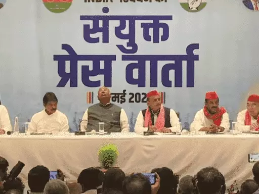 लखनऊ में बुधवार को इंडिया गठबंधन की संयुक्त प्रेस कॉन्फ्रेंस हुई। इसमें कांग्रेस अध्यक्ष मल्लिकार्जुन खड़गे और सपा अध्यक्ष अखिलेश यादव मौजूद रहे। खड़गे ने कहा- देश में दो विचारधाराओं की लड़ाई है। चार चरणों के चुनाव में इंडिया गठबंधन मजबूत दिख रहा है। मोदी की सरकार इस बार नहीं बनेगी। इंडिया गठबंधन की सरकार बनने जा रही है।