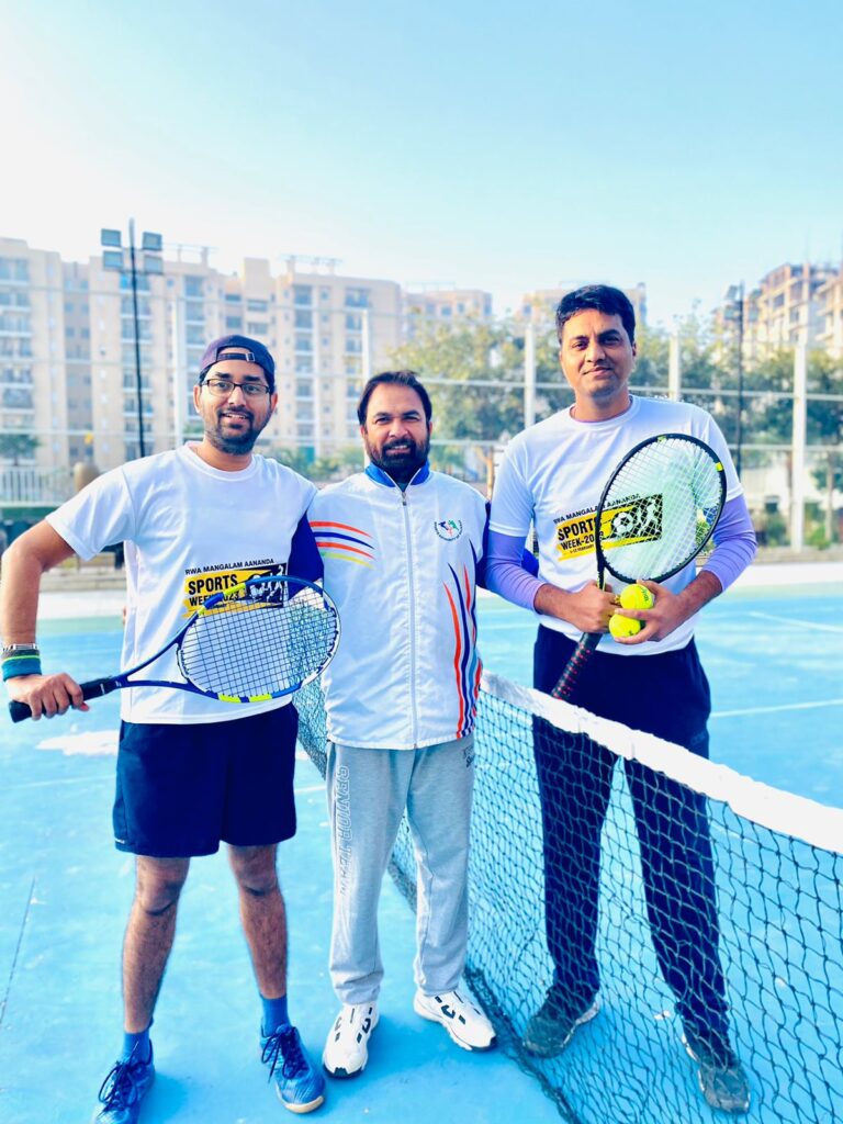 जयपुर:-3 साल बाद जयपुर के सांगानेर स्थित मंगलम आनंदा सोसाइटी में आयोजित हो रहे स्पोर्ट्स वीक के तीसरे दिन आज केरम के सभी मैच क्वार्टर फाइनल तक खेले गए I केरम के अलावा आज सुबह लॉन टेनिस के मुकाबले हुए । स्पोर्ट्स वीक में आज तीसरे दिन टेबल टेनिस , बैडमिंटन और बॉक्स क्रिकेट के मैच खेले गए ।