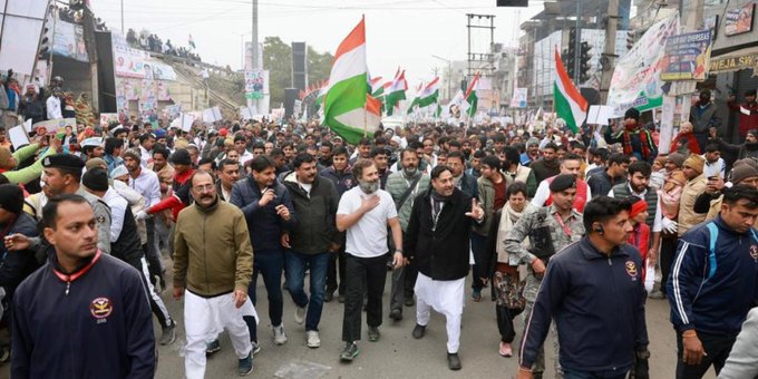 करनाल :- भीषण ठंड और कोहरे के बीच कांग्रेस नेता राहुल गांधी की अगुवाई में ‘भारत जोड़ो यात्रा’ रविवार सुबह करनाल के नीलोखेड़ी क्षेत्र में दोद्वा से फिर से शुरू हुई. यह पदयात्रा पानीपत से शनिवार को करनाल जिले में पहुंची थी