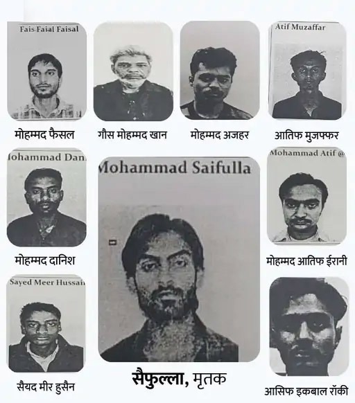 इन्हें फांसी की सजा: 1. मोहम्मद फैसल, 2. गौस मोहम्मद खान, 3. मोहम्मद अजहर, 4. आतिफ मुजफ्फर, 5. मोहम्मद दानिश, 6. सैयद मीर हुसैन, 7. आसिफ इकबाल रॉकी