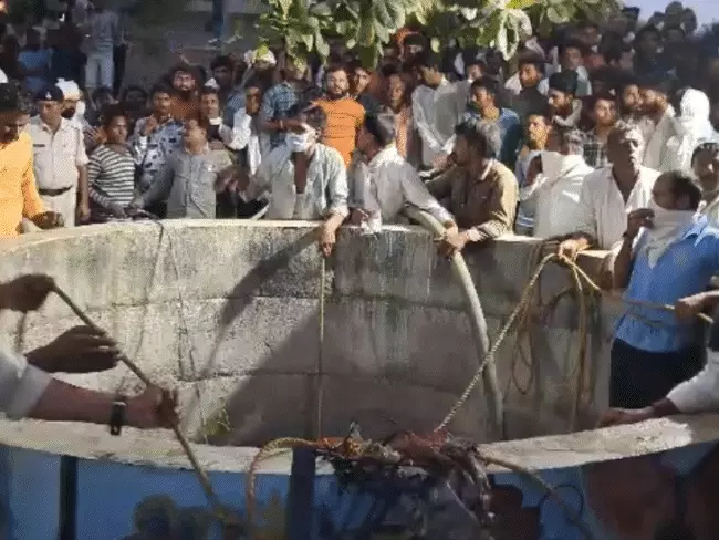 गणगौर विसर्जन के लिए कुएं की सफाई कर रहे थे लोग