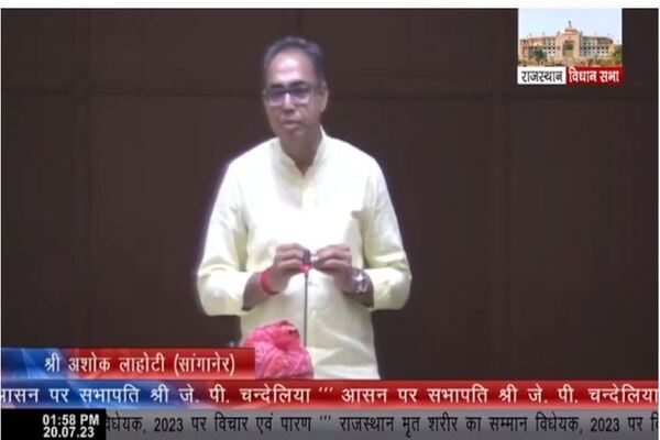 जयपुर:-सांगानेर से भाजपा विधायक डॉ.अशोक लाहोटी ने गुरुवार को विधानसभा में राजस्थान मृत शरीर का सम्मान भी देख 2023 के चर्चा के दौरान कर्नाटक में आचार्य कामकुमार नंदी महाराज के अपहरण और निर्मम हत्या का मामला उठाया।