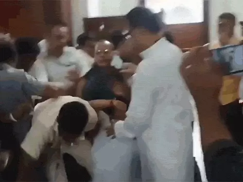शंकर घोष जब निलंबन के बाद सदन से बाहर निकाले जा रहे थे, तो वे गिर गए। उनका यह वीडियो भाजपा नेता शुभेंदु अधिकारी ने सोशल मीडिया प्लेटफॉर्म X पर साझा किया। शुभेंदु ने इसे लोकतंत्र की हत्या बताया।
