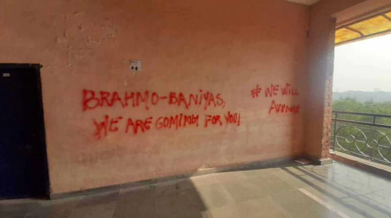 नई दिल्ली :- जवाहरलाल नेहरू नेशनल यूनिवर्सिटी (JNU) के कैंपस की दीवारों पर ब्राह्मणों और बनियों के खिलाफ नारे लिखे मिले हैं। स्कूल ऑफ इंटरनेशनल स्टडीज की दीवारों पर लाल रंग से ब्राह्मणों कैंपस छोड़ो; ब्राह्मणों-बनियों हम तुम्हारे लिए आ रहे हैं, तुम्हें बख्शा नहीं जाएगा; शाखा लौट जाओ… जैसी धमकियां लिखी हैं।