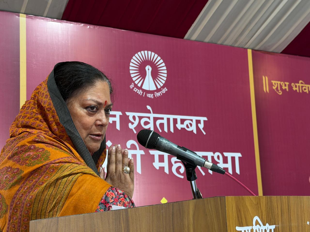 छोटी खाटू (डीडवाना) में आयोजित आचार्य महाश्रमण मर्यादा महोत्सव को संबोधित करते हुए वसुंधरा राजे ने कहा कि जैन धर्म अहिंसा पर आधारित है और किसी भी जीव को नुकसान पहुंचाना हिंसा माना गया है। उन्होंने कहा कि राजमाता विजया राजे सिंधिया ने उन्हें यह सीख दी थी कि जीवन में किसी का मन आहत नहीं करना चाहिए और वे उसी मार्ग पर चलने का प्रयास कर रही हैं।