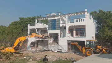 3 बुलडोजर ने 5 घंटे में जमींदोज किया 3 करोड़ का मकान