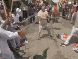 थोड़ी देर में कांग्रेस कार्यकर्ता भी सामने आ गए, जिसके बाद दोनों पक्षों के बीच लाठी-डंडों, ईंट-पत्थरों और हाथापाई की नौबत आ गई।