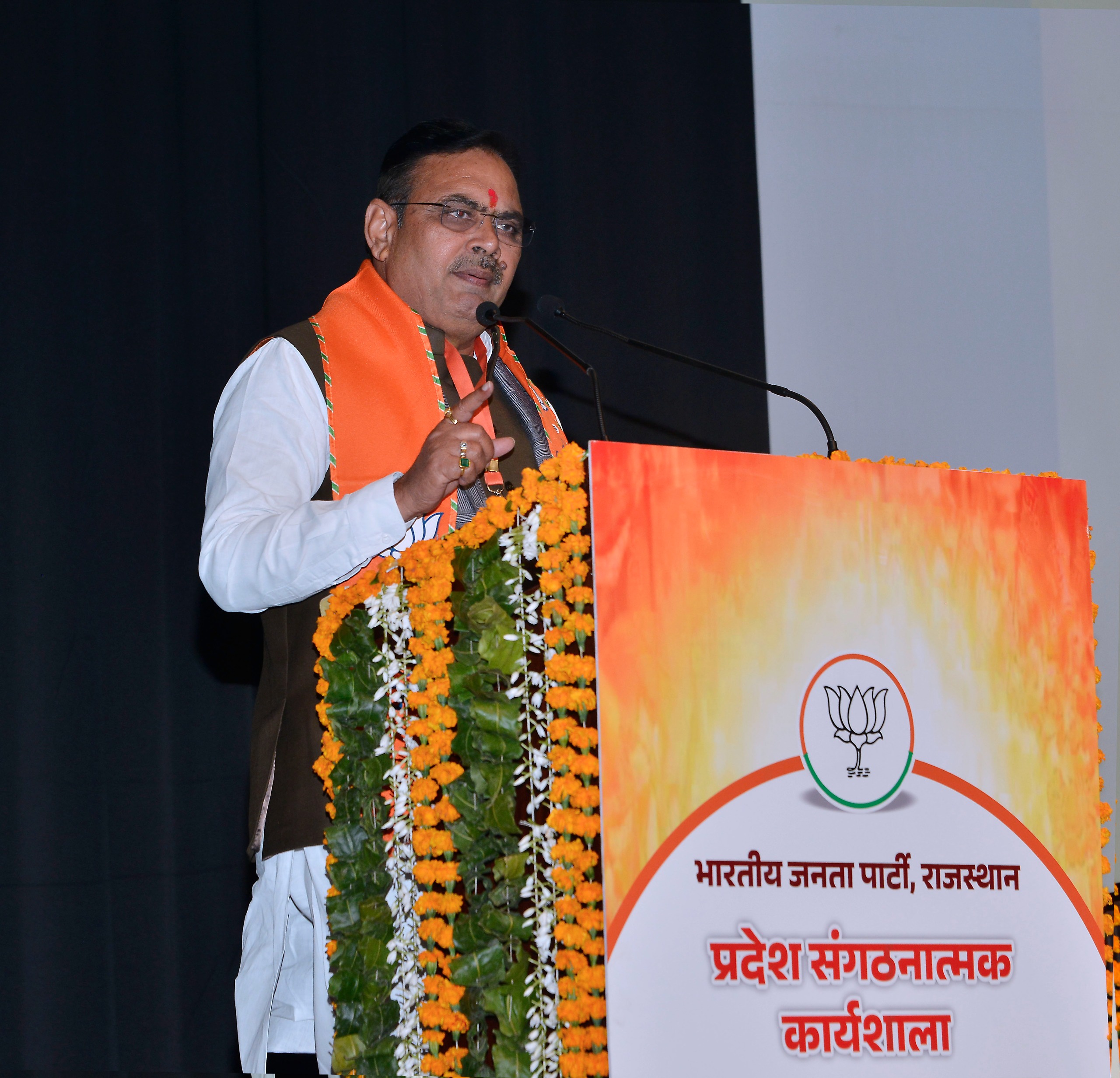 जयपुर, 03 जनवरी। मुख्यमंत्री भजनलाल शर्मा ने शनिवार को भाजपा की प्रदेश संगठनात्मक कार्यशाला में कांग्रेस को आइना दिखाते हुए कांग्रेस सरकार के पांच साल के कार्यकाल की तुलना भाजपा सरकार के दो साल के कार्यकाल से की। उन्होंने कहा कि प्रधानमंत्री नरेन्द्र मोदी के नेतृत्व में राज्य सरकार ने दो वर्ष में ऐतिहासिक कार्य करते हुए संकल्प पत्र के लगभग 70 प्रतिशत वादे पूरे कर दिए हैं। प्रधानमंत्री नरेन्द्र मोदी के विकसित भारत की यात्रा में राजस्थान भी पूरी ताकत से आगे बढ़ रहा है। हमारी ताकत हमारे कार्यकर्ता हैं जो बिना किसी स्वार्थ के राष्ट्र सेवा के लिए काम करता है। भाजपा कार्यकर्ताओं की यह कार्यशाला भाजपा के संगठन को प्रदेश, जिला, मंडल और बूथ तक सक्रियता से मजबूत करने के साथ ही, केंद्र और राज्य सरकार की योजनाओं को धरातल पर उतारने का काम करेगी।