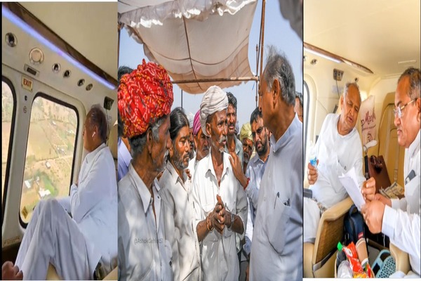 जयपुर:-मुख्यमंत्री अशोक गहलोत ने मंगलवार को जालोर में बिपरजॉय चक्रवात से प्रभावित क्षेत्रों का हवाई सर्वेक्षण किया। श्री गहलोत ने जालोर के विभिन्न क्षेत्रों का दौरा कर प्रभावित लोगों से मुलाकात की तथा अधिकारियों से प्रभावित क्षेत्र में चल रहे बचाव एवं राहत कार्यों के बारे में जानकारी भी ली।