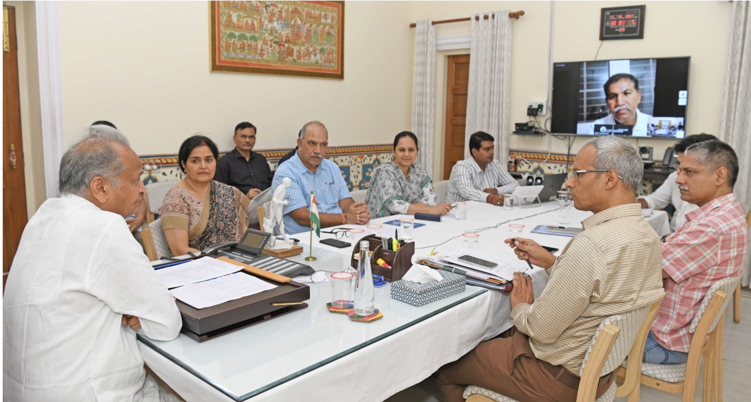 इस अवसर पर ग्रामीण विकास एवं पंचायतीराज मंत्री रमेश मीणा (वीसी के माध्यम से), मुख्य सचिव श्रीमती उषा शर्मा, अतिरिक्त मुख्य सचिव अभय कुमार, अतिरिक्त मुख्य सचिव वित्त अखिल अरोड़ा एवं अन्य उच्चाधिकारी उपस्थित रहे।