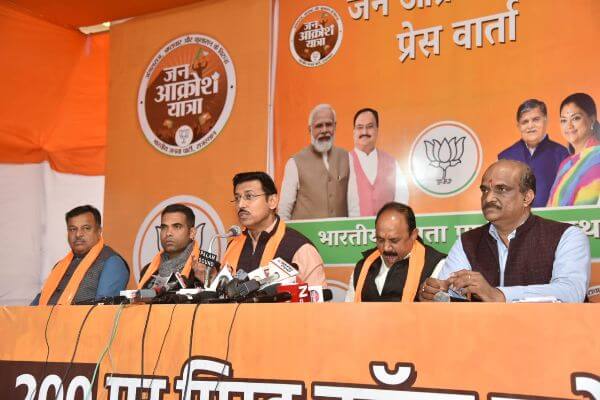 उन्होंने कहा कि सभाओं में कांग्रेस के खिलाफ जनता का भारी आक्रोश दिख रहा है, जन आक्रोश यात्रा के अंतर्गत जयपुर संभाग में 31 लाख 50 हजार से अधिक लोगों से संपर्क किया जा चुका है, 22 हजार 800 किलोमीटर यात्रा निकल चुकी है, साथ ही 15 हजार 860 नुक्कड़ सभाएं और चौपाले हो चुकी है। जिसके अंतर्गत लगभग 13 लाख 27 हजार से ज्यादा स्टीकर लगाए, 28 लाख 88 हजार से अधिक आरोप पत्र वितरित किए जा चुक है।
