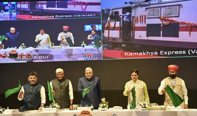 उपराष्ट्रपति जगदीप धनखड़ ने जल शक्ति मंत्रालय के राष्ट्रीय जल मिशन का संदेश प्रदान करने के उद्देश्य से गाडी संख्या 15667/68, कामाख्या एक्सप्रेस के विनायल रैपिंग किए गए रेक को वाराणसी स्टेशन पर जयपुर से वीडियों कॉन्फ्रेसिंग के माध्यम से हरी झंडी दिखाकर रवाना किया। रेलेव द्वारा आमजन को जल संरक्षण का संदेश प्रदान करने तथा जीवन में जल के महत्व को प्रदर्शित करने के लिए गाडी संख्या 15667/68, कामाख्या एक्सप्रेस और गाडी संख्या 16317/18, हिमसागर एक्सप्रेस के रेक पर विनायल रैपिंग की गई है।