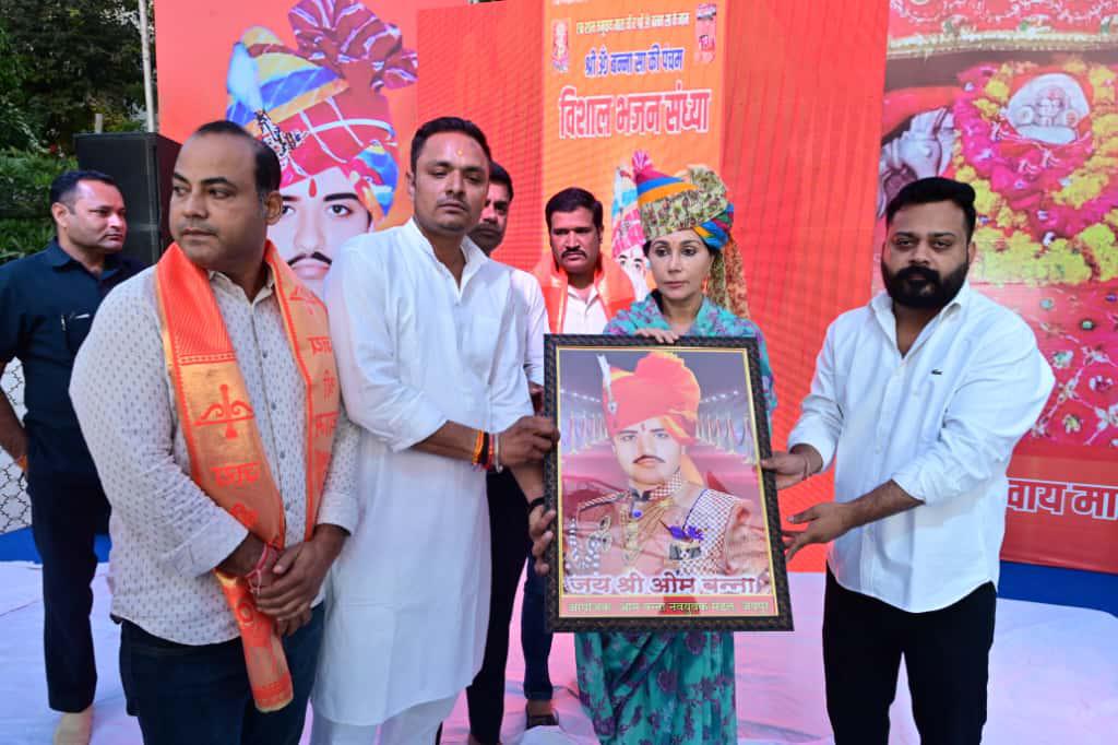 जयपुर:-नया खेड़ा विधाधर नगर में ओम बन्ना नवयुवक मंडल की ओर से आज पंचम विशाल भजन संध्या का भव्य आयोजन किया गया। इस कार्यक्रम में उपमुख्यमंत्री दिया कुमारी ने मुख्य अतिथि के रूप में शिरकत की। कार्यक्रम में पहुँचने पर आयोजकों द्वारा उनका भव्य स्वागत किया गया।