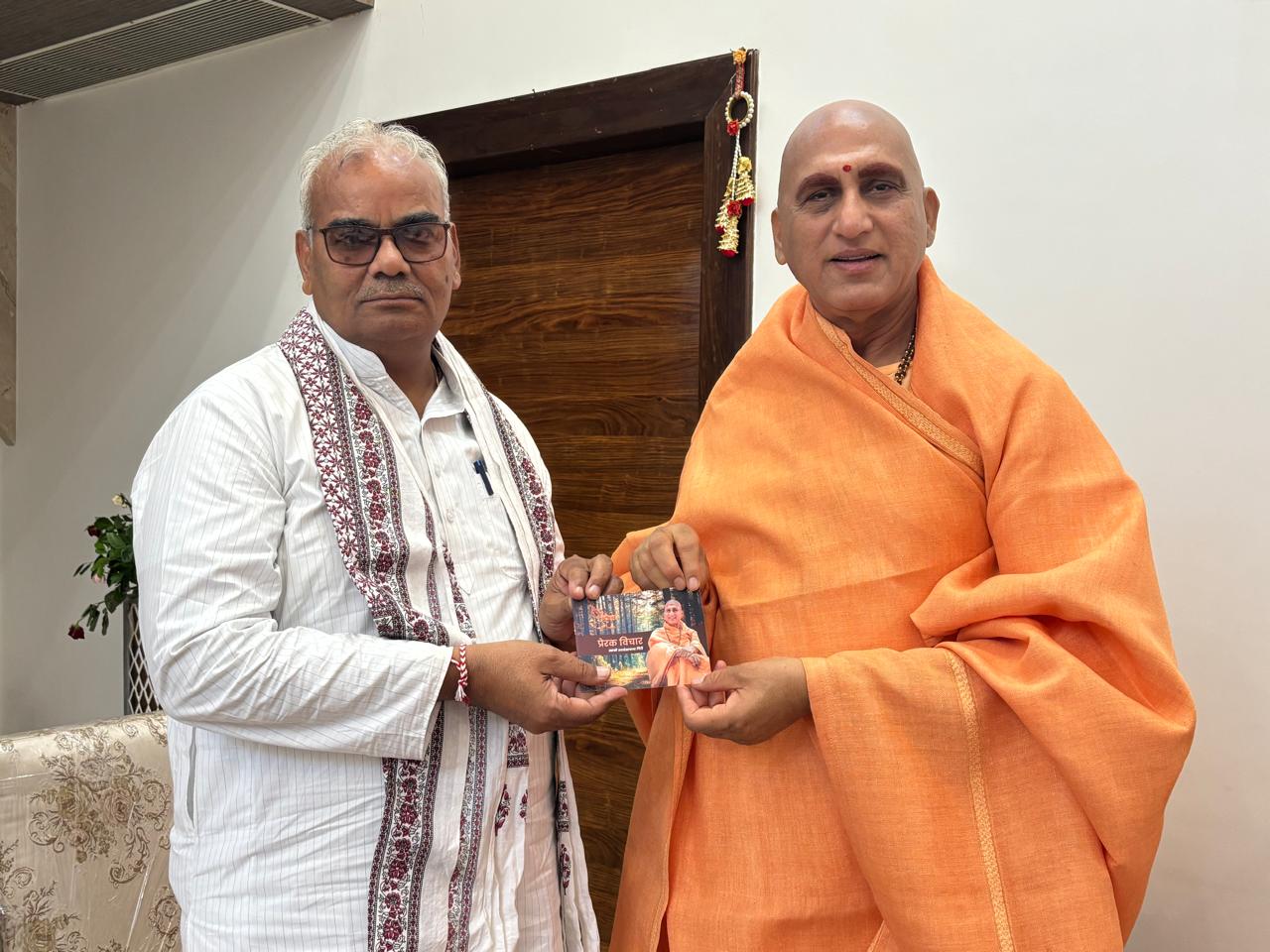 निजी प्रवास पर जयपुर पधारे स्वामी अवधेशानंद जी महाराज सें मंत्री मदन दिलावर ने प्रदेश सें जुड़े विभिन्न विषयो पर चर्चा की! लगभग आधा घंटा चली वार्ता मे स्वामी महाराज ने मंत्री जी को स्वयं द्वारा रचित धर्म साहित्य की पुस्तके भी भेट की!