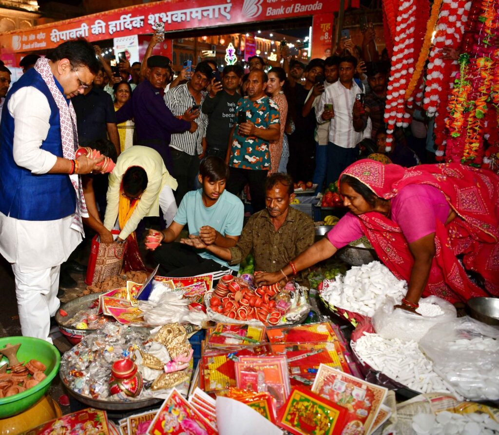 मुख्यमंत्री भजनलाल शर्मा ने दीपावली के उपलक्ष पर वोकल फॉर लोकल को बढ़ावा देते हुए बड़ी चौपड़ पर स्ट्रीट वेंडर से मिट्टी के दीये एवं पूजन सामग्री की खरीददारी की एवं यूपीआई के माध्यम से ऑनलाइन भुगतान किया।