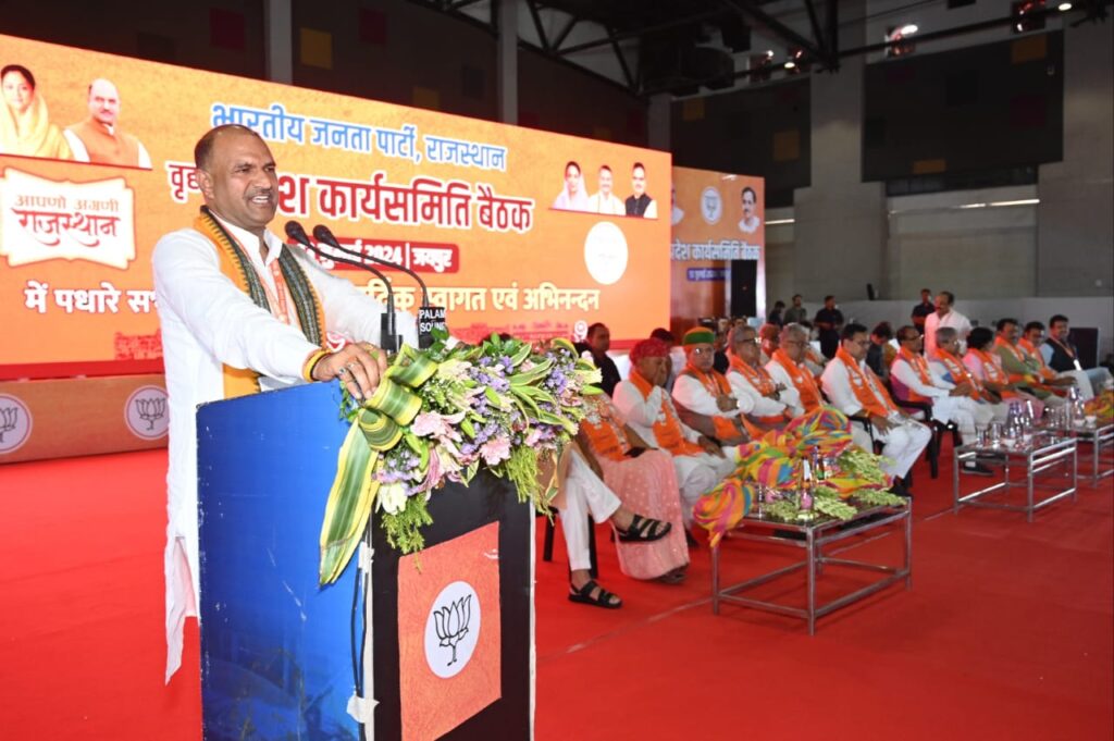 केन्द्र में नरेन्द्र मोदी के नेतृत्व में तीसरी बार सरकार का गठन होना और राजस्थान में मुख्यमंत्री भजनलाल शर्मा के नेतृत्व में सरकार का बनना प्रदेश की जनता के लिए एक नई सौगात है। भाजपा विश्व की सबसे बडी राजनीतिक पार्टी है, इसमें वरिष्ठ नेताओं के मार्गदर्शन से हम आगे बढ़ रहे है। संगठन बढे चलो का ध्येय पार्टी की विचारधारा को आगे बढ़ने में सहयोग कर रहा है, सभागार में उपस्थित भाजपा के कार्यकर्ताओं की संख्या को देखते हुए यह कार्यसमिति ऐतिहासिक साबित हो गई है। भाजपा की कार्यसमिति विकसित, सशक्त, समर्थ और स्वस्थ राजस्थान की परिकल्पना को चरितार्थ कर रही है।