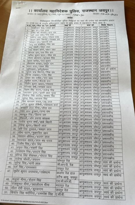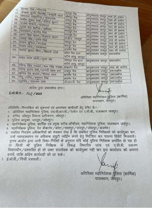 जयपुर:-नवंबर माह में होने वाले विधानसभा के चुनाव को देखते हुए 3 साल से लगे हुए प्रदेश के 69 थाना अधिकारियों के पुलिस महानिदेशक ने रेंज के बाहर तबादले किए हैं।