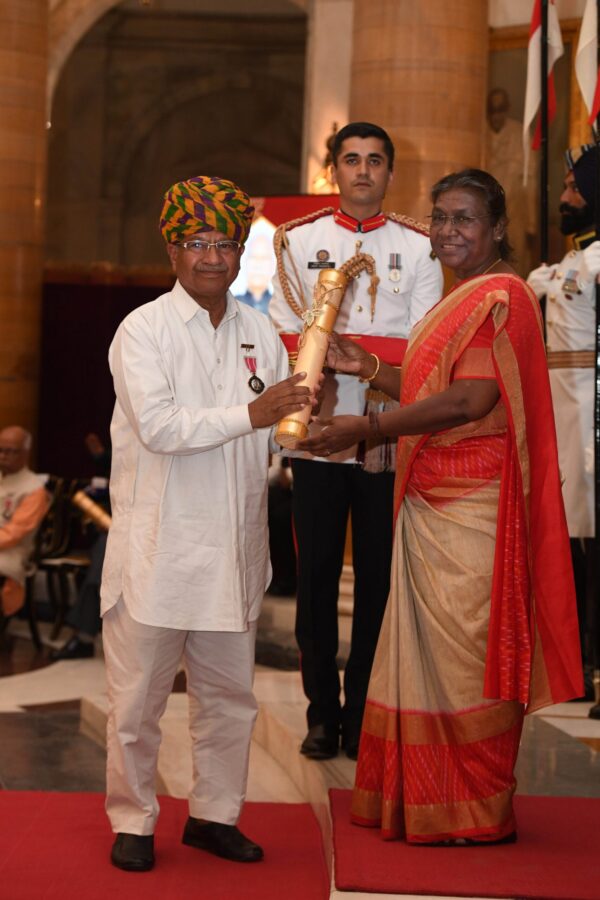 जयपुर:-पानी बचाने की चौका तकनीक से तालाबों और चारागाहों की तस्वीर बदलने वाले जयपुर जिले के लापोड़िया निवासी लक्ष्मण सिंह को पद्मश्री से सम्मानित किया गया है। राष्ट्रपति भवन में हुए समारोह में लक्ष्मण सिंह को राष्ट्रपति द्रौपदी मुर्मू ने पद्मश्री से सम्मानित किया। इस साल 25 जनवरी को लक्ष्मण सिंह सहित राजस्थान की चार हस्तियों को पद्मश्री देने की घोषणा की गई थी। कला के क्षेत्र में जयपुर के अहमद हुसैन और मोहम्मद हुसैन, समाज सेवा में लक्ष्मण सिंह और मूलचंद लोढ़ा को पद्मश्री देने की घोषणा की गई थी।राष्ट्रपति भवन में हुए समारोह में राजस्थान से लक्ष्मण सिंह ही पहुंचे थे।