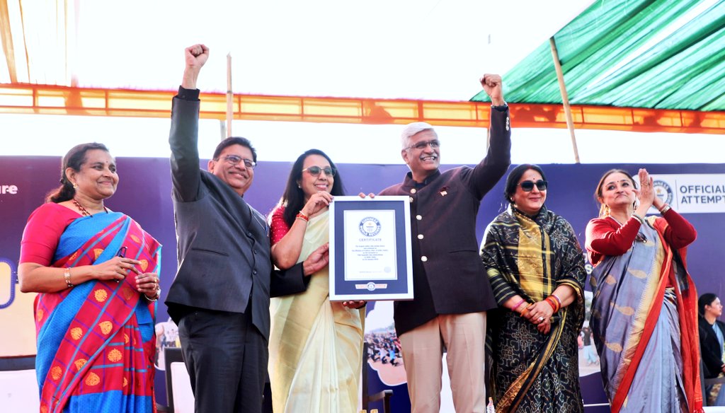 ‘जयति जय मम भारतम्’ ने “सबसे बड़े भारतीय लोक विविधता नृत्य” शीर्षक प्रयास के लिए गिनीज वर्ल्ड रिकॉर्ड बनाकर इतिहास में अपना नाम दर्ज कराया। इस ऐतिहासिक उपलब्धि की घोषणा गिनीज के अधिकारियों ने एक विशेष समारोह के दौरान की। केंद्रीय संस्कृति और पर्यटन मंत्री गजेंद्र सिंह शेखावत ने सभी कलाकारों की ओर से प्रमाण पत्र प्राप्त किया। उन्होंने कहा कि सम्मान का यह क्षण राष्ट्र के लिए गर्व का एक बड़ा स्रोत है, जो हजारों कलाकारों, संगीत नाटक अकादमी और मंत्रालय के भारत की कलात्मक विरासत को एक अद्वितीय पैमाने पर प्रदर्शित करने के समर्पण के सामूहिक प्रयासों का जश्न मनाता है।