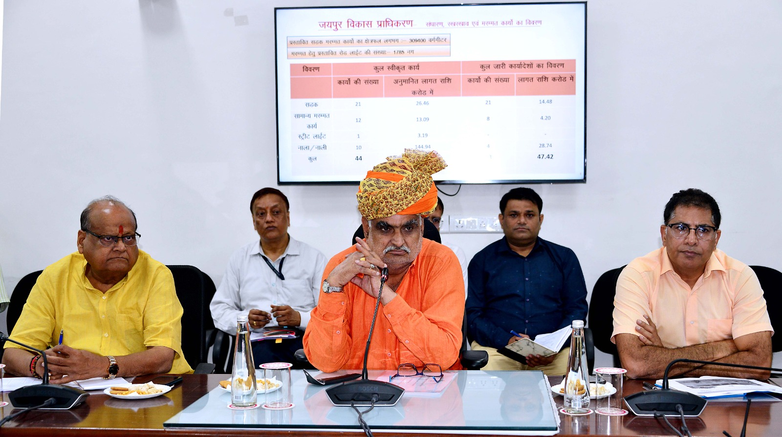 झाबर सिंह खर्रा ने अधिकारीगण को आपसी समन्वय स्थापित कर कार्य करने के निर्देश दिए। उन्होंने कहा कि राइजिंग राजस्थान के आगामी इन्वेस्टमेंट समिट को ध्यान में रखते हुए दीपावली से पूर्व ही क्षतिग्रस्त सड़कों की मरम्मत एवं रखरखाव के सभी कार्यों सहित स्वच्छता-सम्बन्धी कार्य समयबद्धता व गुणवत्तापूर्ण तरीके से पूरे हों।