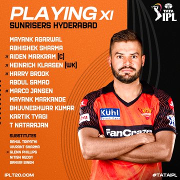सनराइजर्स हैदराबाद: ऐडन मार्करम (कप्तान), हैरी ब्रूक, मयंक अग्रवाल, हेनरिक क्लासेन (विकेटकीपर), अभिषेक शर्मा, अब्दुल समद, मार्को यानसेन, भुवनेश्वर कुमार, मयंक मारकंडे, कार्तिक त्यागी और टी नटराजन।