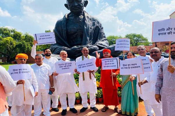 दिल्ली:-संसद भवन परिसर, दिल्ली में गांधी जी की प्रतिमा के सामने सोमवार को भाजपा सांसदों ने भाजपा प्रदेश अध्यक्ष की अगुवाई में’नहीं सहेगा राजस्थान’ के नारे लगाते हुए महिला अत्याचार, बिगड़ती कानून व्यवस्था को लेकर कांग्रेस सरकार के खिलाफ प्रदर्शन किया।