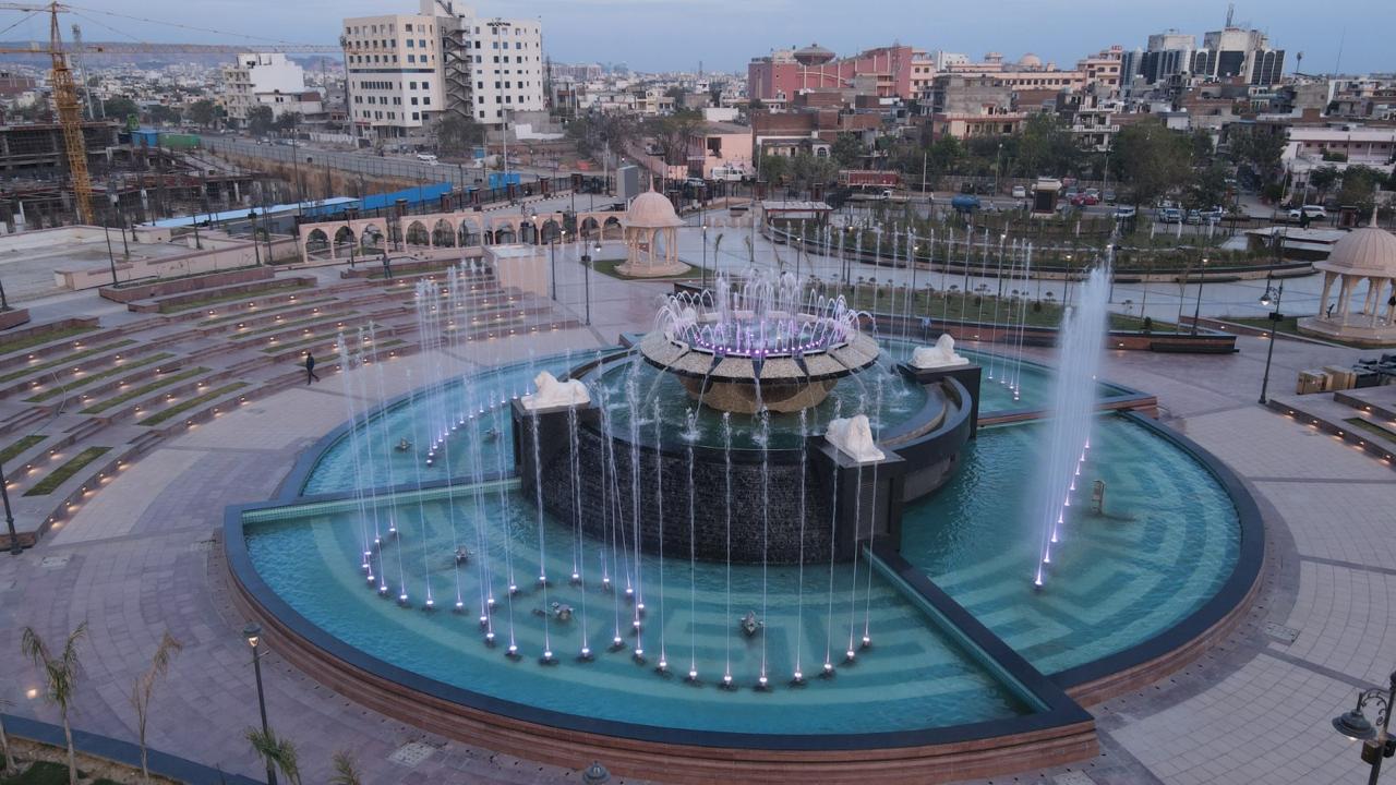 इस परियोजना के केंद्र में सेंट्रल म्यूजिकल फाउंटेन है, जहां हर शाम 7 से 8 बजे तक संगीत और रोशनी के साथ पानी की स्क्रीन पर लेजर शो पर्यटकों और स्थानीय लोगों के लिए आकर्षण का केन्द्र बनता है। इसके साथ ही, यह मंत्रमुग्ध करने वाली 3डी इमेजरी में राजस्थानी संस्कृति की कहानियां भी सुनाता है। यह फाउंटेन चार सफेद संगमरमर की शेर की मूर्तियों से घिरा हुआ है, जो शक्ति और गौरव का प्रतीक है। धौलपुर पत्थर की बनी हुई कलात्मक छतरियां और बारीकी से डिजाइन किये गए मेहराब इस स्थान को शाही एहसास देते हैं। एक ऊंचे मंच के ऊपर एक छोटा अंग्रेजी फाउंटेन यूरोपीय शैली की झलक दिखाता है, जो परंपरा और आधुनिकता का एक सहज मिश्रण है।