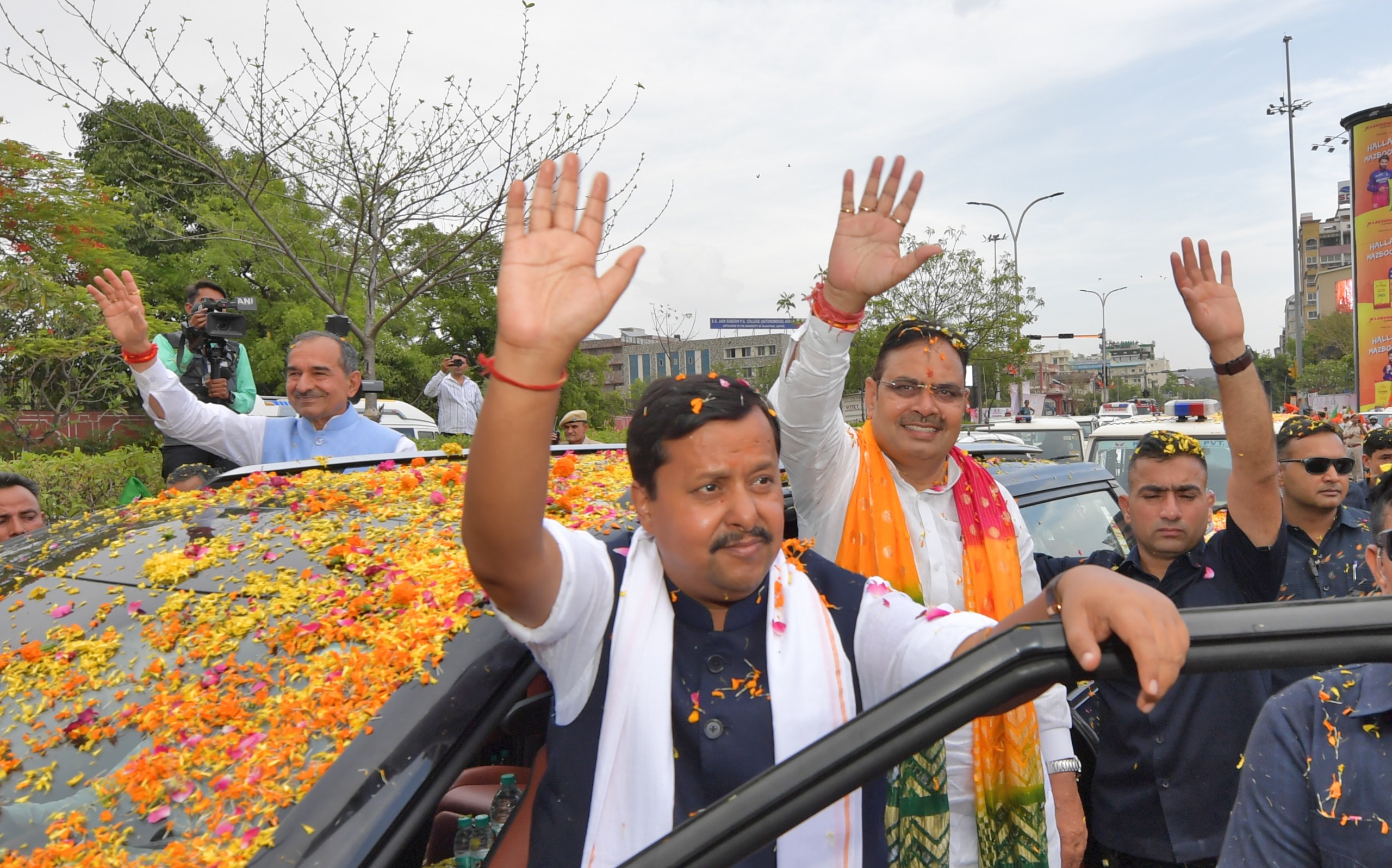 जयपुर, 27 अप्रेल। भाजपा के राष्ट्रीय अध्यक्ष नितिन नवीन के जयपुर आगमन पर मुख्यमंत्री भजनलाल शर्मा के नेतृत्व में भव्य एवं ऐतिहासिक स्वागत किया गया। एयरपोर्ट से लेकर भाजपा प्रदेश मुख्यालय तक मार्ग के विभिन्न स्थानों पर हजारों की संख्या में पदाधिकारियों एवं कार्यकर्ताओं ने गाजे-बाजे, पुष्प वर्षा और मंत्रोच्चार के बीच नवीन का पलक-पावड़े बिछाकर अभिनंदन किया।