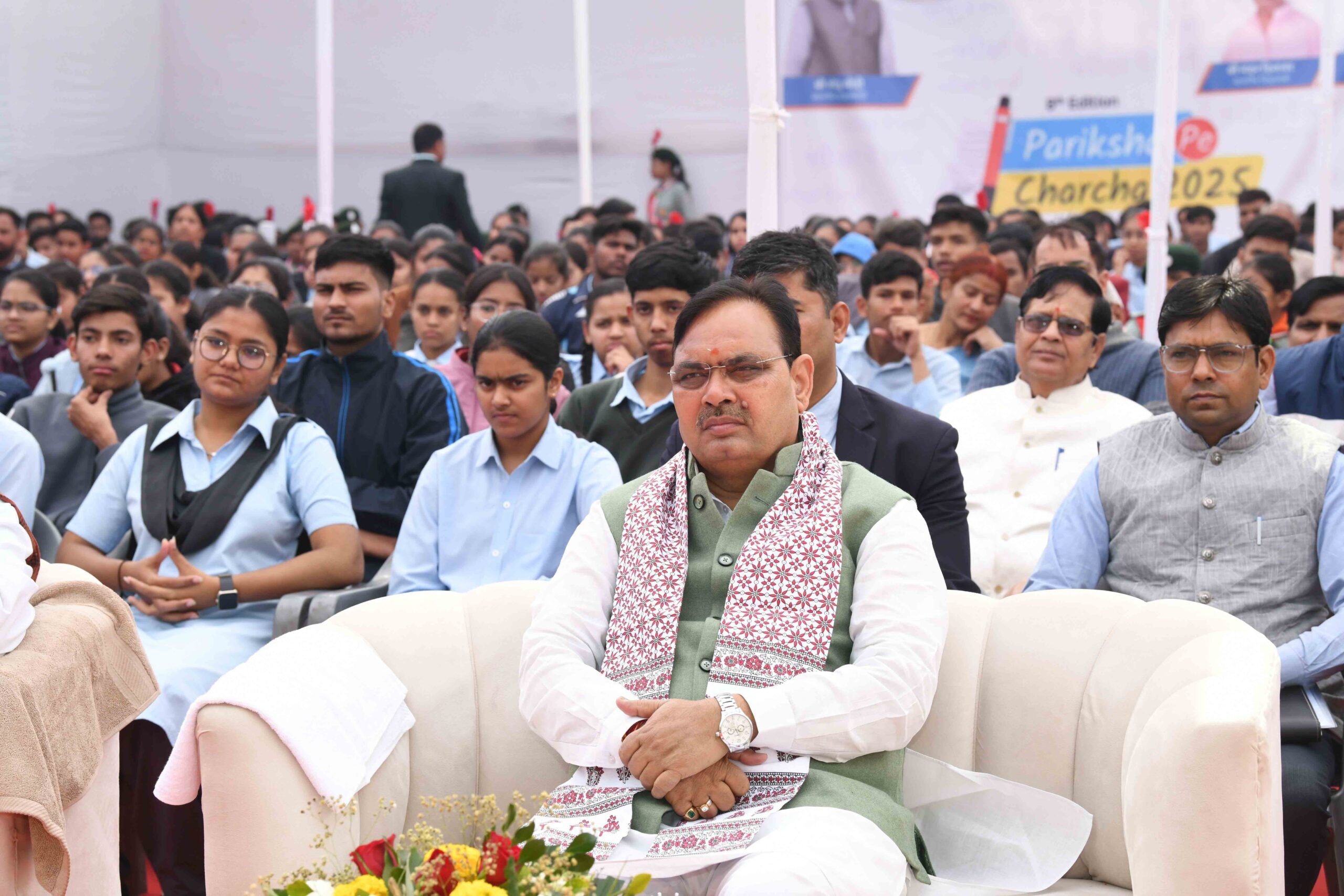 जयपुर, 10 फरवरी। प्रधानमंत्री नरेंद्र मोदी ने सोमवार को ‘परीक्षा पे चर्चा’ कार्यक्रम के 8वें संस्करण में विद्यार्थियों के साथ तनाव मुक्त परीक्षा के विभिन्न पहलुओं पर बातचीत की। मुख्यमंत्री भजनलाल शर्मा ने भी जयपुर के मानसरोवर स्थित महात्मा गांधी राजकीय अंग्रेजी माध्यम स्कूल में शिक्षकों एवं विद्यार्थियों के साथ परीक्षा पे चर्चा कार्यक्रम सुना।