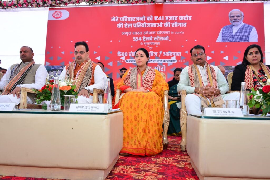 मोदी सोमवार को वीडियो कॉन्फ्रेंसिंग के माध्यम से अमृत भारत स्टेशन योजना के अन्तर्गत देश भर में लगभग 41 हजार करोड़ रूपए की लागत से 553 रेलवे स्टेशनों के पुनर्विकास कार्य के शिलान्यास और 1500 रोड ओवरब्रिज एवं अंडरपास के लोकार्पण एवं शिलान्यास कार्यक्रम को सम्बोधित कर रहे थे। साथ ही, उन्होंने उत्तरप्रदेश के विश्वस्तरीय गोमती नगर रेलवे स्टेशन का उद्घाटन भी किया। इनमें प्रदेश के 21 रेलवे स्टेशन एवं 112 रोड ओवरब्रिज एवं अंडरपास शामिल हैंे। देश भर के 2 हजार 21 स्थानों पर यह कार्यक्रम आयोजित हुआ जिसमें 40 लाख से अधिक लोग जुड़े। मुख्यमंत्री भजनलाल शर्मा ने सांगानेर रेलवे स्टेशन पर आयोजित कार्यक्रम में शिरकत की और प्रधानमंत्री का इन सौगातों के लिए आभार व्यक्त किया।