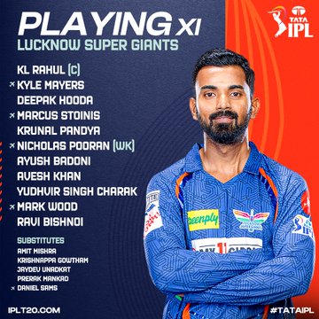 लखनऊ सुपरजायंट्स: केएल राहुल (कप्तान), काइल मेयर्स, दीपक हुड्डा, मार्कस स्टोइनिस, क्रुणाल पंड्या, निकोलस पूरन (विकेटकीपर), आयुष बडोनी, आवेश खान, युधवीर सिंह चरक, मार्क वुड और रवि बिश्नोई।