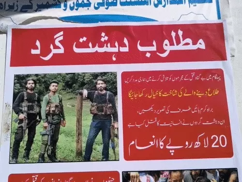 जम्मू-कश्मीर के पहलगाम आतंकी हमले के बाद सुरक्षा एजेंसियों ने तीन पाकिस्तानी आतंकियों की पहचान कर उनके पोस्टर जारी किए हैं। इन पर 20 लाख रुपये के इनाम की घोषणा की गई है।
