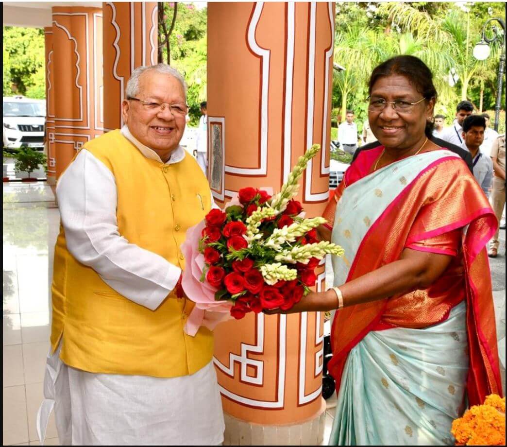 राष्ट्रपति द्रौपदी मुर्मू का राजभवन पहुँचने पर भी राज्यपाल मिश्र ने उनका पुष्प भेंटकर स्वागत किया।