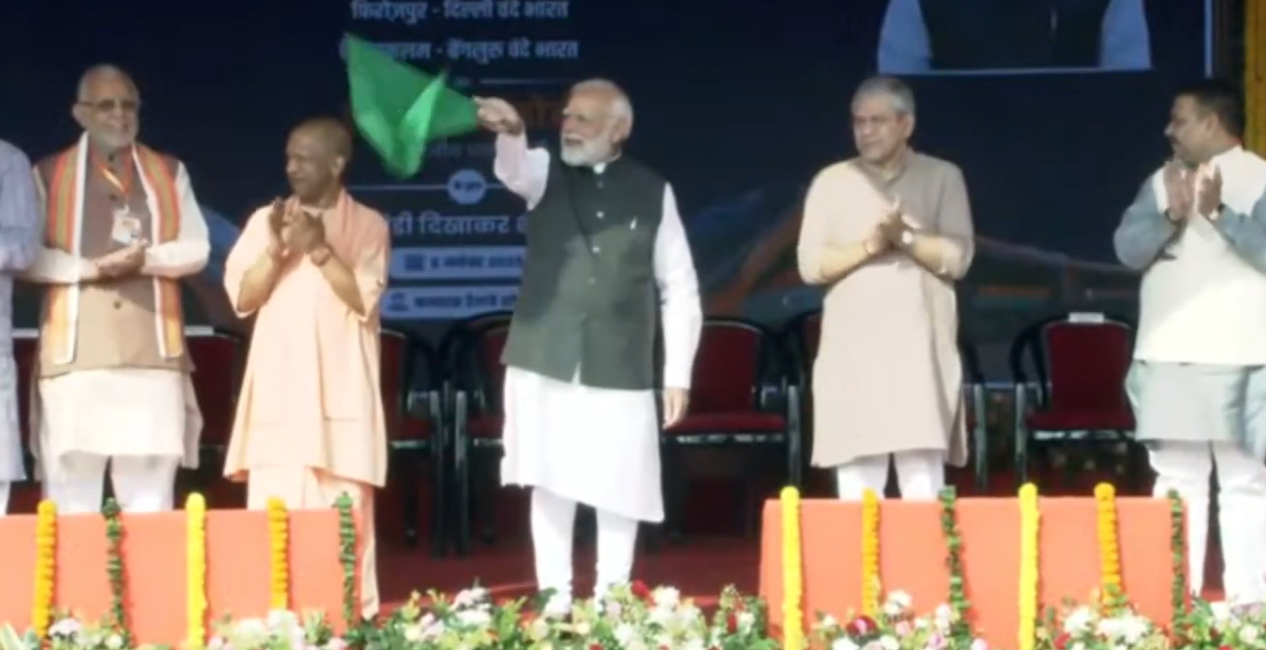 मोदी ने वाराणसी से बनारस–खजुराहो, फिरोजपुर–दिल्ली, लखनऊ–सहारनपुर और एर्नाकुलम–बेंगलुरु मार्गों पर नई वंदे भारत ट्रेनों को रवाना किया। इन चार नई सेवाओं के साथ देश में चल रही वंदे भारत ट्रेनों की संख्या अब 160 से अधिक हो गई है।