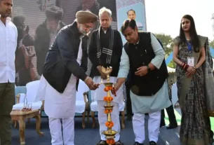 भाजपा के प्रदेशाध्यक्ष मदन राठौड़ ने राजस्थानी गीत का उदाहरण देते हुए कहा कि विवाह में दूल्हे के लिए परिजन महिलाएं गीत गाती है कि ‘‘बन्ना म्हारो केशरियो हजारी गुल रो फूल…‘‘। वैसे ही देश का नेतृत्व करने वाले प्रधानमंत्री नरेंद्र मोदी और राजस्थान का नेतृत्व करने वाले मुख्यमंत्री भजनलाल शर्मा हम सबके दूल्हे है। राठौड़ ने कहा कि मेरे पूर्ववर्ती नेतृत्वकर्ताओं ने संगठन को मजबूती देने का और आगे बढ़ाने का काम बड़े शिद्दत से किया है। मैं उनसे प्रेरणा लेकर और उनके मार्गदर्शन में जो विश्वास केंद्रीय नेतृत्व ने जताया है और जो भरोसा कार्यकर्ताओं ने किया है उस पर खरा उतरने में कोई कौर कसर नहीं छोडूंगा। उन्होंने कहा कि प्रधानमंत्री नरेंद्र मोदी के नेतृत्व में पिछले 10 सालों में देश का मान और सम्मान बढ़ा है। विश्व पटल पर भारत का परचम फहराने का काम पीएम मोदी ने किया है। इसकी बानगी रूस-यूक्रेन युद्ध के बीच भारतीयों को सकुशल निकलवाने का काम किया था।