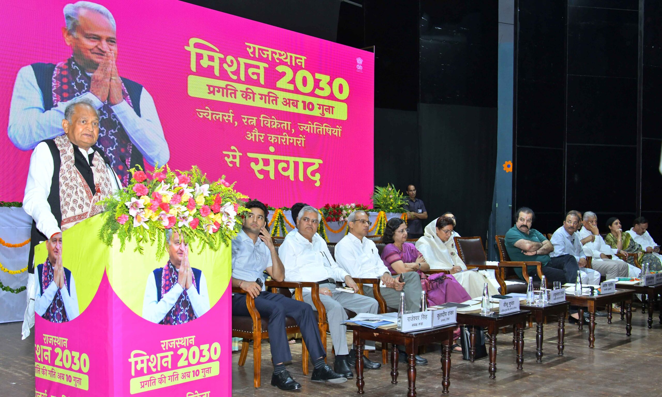 श्री गहलोत बुधवार को जयपुर के बिड़ला सभागार में मिशन-2030 के तहत ज्वैलर्स, रत्न विक्रेताओं और कारीगरों से संवाद कार्यक्रम को संबोधित कर रहे थे। उन्होंने कहा कि पहले राजस्थान पिछड़े राज्यों में आता था, लेकिन 5 वर्षों में हर क्षेत्र के सर्वांगीण विकास से अग्रणी राज्यों में शामिल हो गया है। अब चिकित्सा-शिक्षा सहित देश की तमाम बड़ी शैक्षणिक संस्थाएं प्रदेश में संचालित है। जैम बुर्स की स्थापना भी राज्य की बड़ी उपलब्धि होगी। इससे हजारों लोगों को रोजगार मिलेगा।