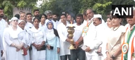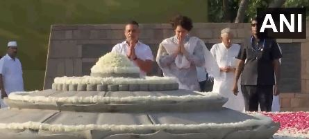 New Delhi [India], August 20 (ANI): Congress Parliamentary Party (CPP) chairperson Sonia Gandhi paid floral tribute to former Prime Minister Rajiv Gandhi on his 79th birth anniversary at ‘Veer Bhumi’ here in the national capital on Sunday. Congress General Secretary Priyanka Gandhi Vadra, Robert Vadra and Congress National President Mallikarjun Kharge, who arrived soon after Sonia Gandhi, also paid homage to the former Prime Minister at his memorial this morning.