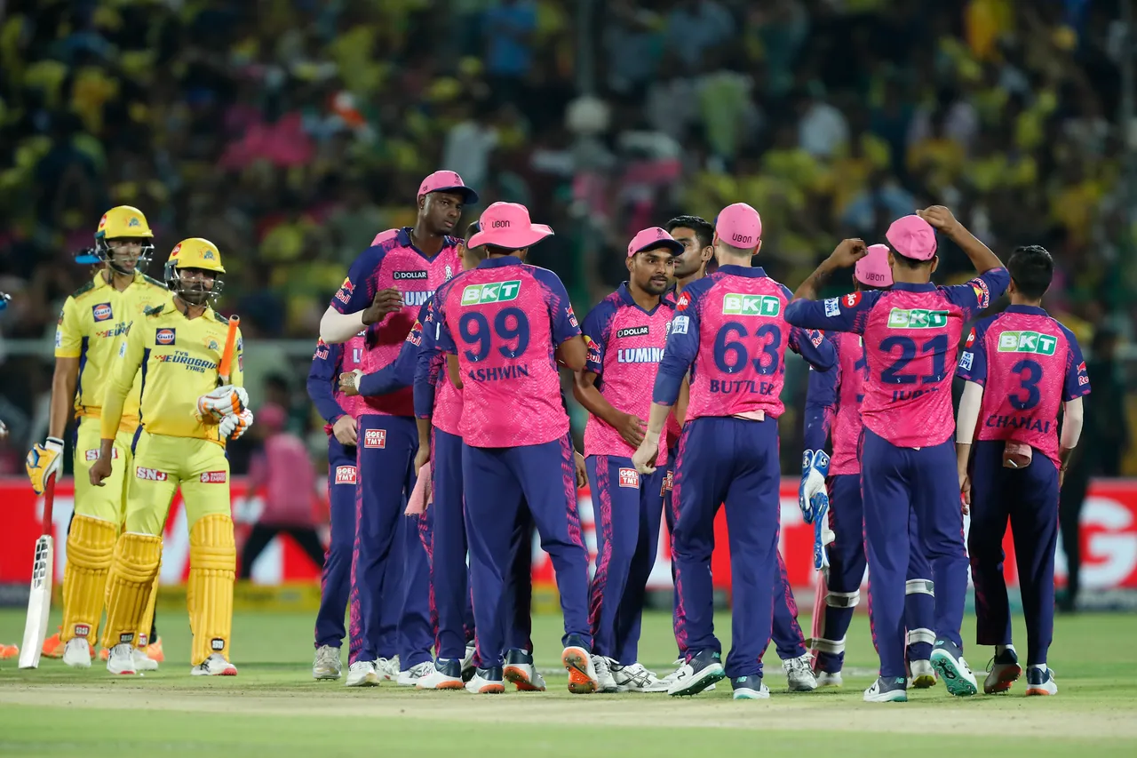 Yashasvi Jaiswal’s 77 off 43 balls, alongwith an excellent finishing effort from Dhruv Jurel and Devdutt Padikkal helped the Rajasthan Royals post 202/5, which is the first time that any team has scored over 200 runs in an IPL match at the Sawai Man Singh Stadium. In reply, Chennai Super Kings struggled to be competitive in their chase. Ruturaj Gaikwad scored 47 off 29 balls before becoming the the second of three wickets that Adam Zampa took. Meanwhile, danger man Ajinkya Rahane fell for 15 off 13 balls and CSK were left hoping for a miraculous partnership to come from Ravindra Jadeja and Shivam Dube. Dube kept them interested until about halfway through the 19th over where it pretty much became mathematically impossible for CSK to chase it down. Dube was dismissed off the last ball of the match on 52 off 33 and CSK’s innings ended on 170/6 and the Royals won the match by 32 runs. Earlier, Jaiswal stormed his way to a 26-ball half century as he led the way in Rajasthan Royals dominating the powerplay. They scored 64 runs in the first six overs with Jos Buttler choosing to play second fiddle to Jaiswal. Buttler soon fell as did RR captain Sanju Samson after him. RR temporarily struggled to keep their run rate up after Jaiswal’s innings came to an end. That was only temporary though as Devdutt Padikkal and Dhruv Jurel gave RR a good finish and took them to a score of 202/5. The pair put up 48 runs off 20 balls for the fifth wicket as RR scored a total of 63 runs in the last five overs. The Royals have jumped back to the top of the table with the win.