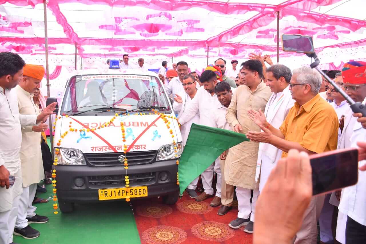 अजमेर:-आरटीडीसी चेयरमैन धर्मेंद्र राठौड़ ने ग्राम पंचायत नांद के लेसवा में शनिवार कोअजमेर विद्युत वितरण निगम के 33/11 केवी विद्युत सब स्टेशन का शिलान्यास किया और चिरंजीवी योजना के तहत 104 एंबुलेंस सेवा को हरी झंडी दिखाकर रवाना किया।