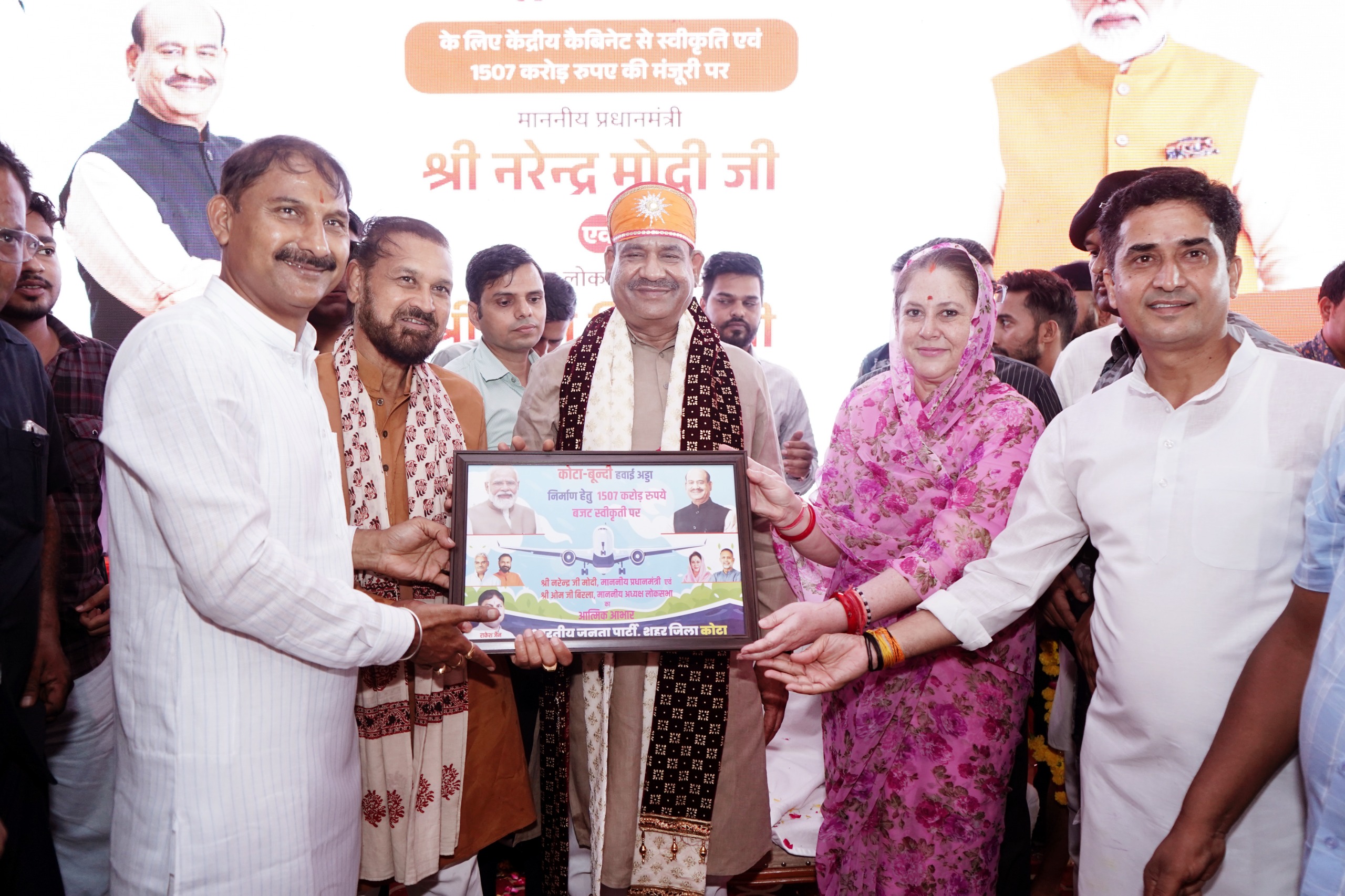 कोटा। कोटा-बूंदी ग्रीनफील्ड एयरपोर्ट परियोजना को केंद्रीय कैबिनेट की स्वीकृति और 1507 करोड़ के बजट को मंजूरी मिलने के ऐतिहासिक निर्णय के बाद कोटा सहित सम्पूर्ण हाड़ौती क्षेत्र में हर्ष और उत्साह की लहर है। इस परियोजना को पीएम गतिशक्ति का हिस्सा बनाने से लोगों का उल्लास दोगुना हो गया है। जिसके लिए हाड़ौती की जनता ने लोकसभा स्पीकर का अभिनंदन कर पीएम मोदी का आभार जताया। शुक्रवार को शक्ति नगर स्थित लोकसभा अध्यक्ष के कैंप कार्यालय पर प्रधानमंत्री नरेन्द्र मोदी और लोकसभा अध्यक्ष ओम बिरला का आभार जताने के लिए विभिन्न सामाजिक, व्यापारिक, शैक्षणिक व औद्योगिक संगठनों के प्रतिनिधियों के साथ-साथ बड़ी संख्या में हाड़ौती का जनमानस जुटा।