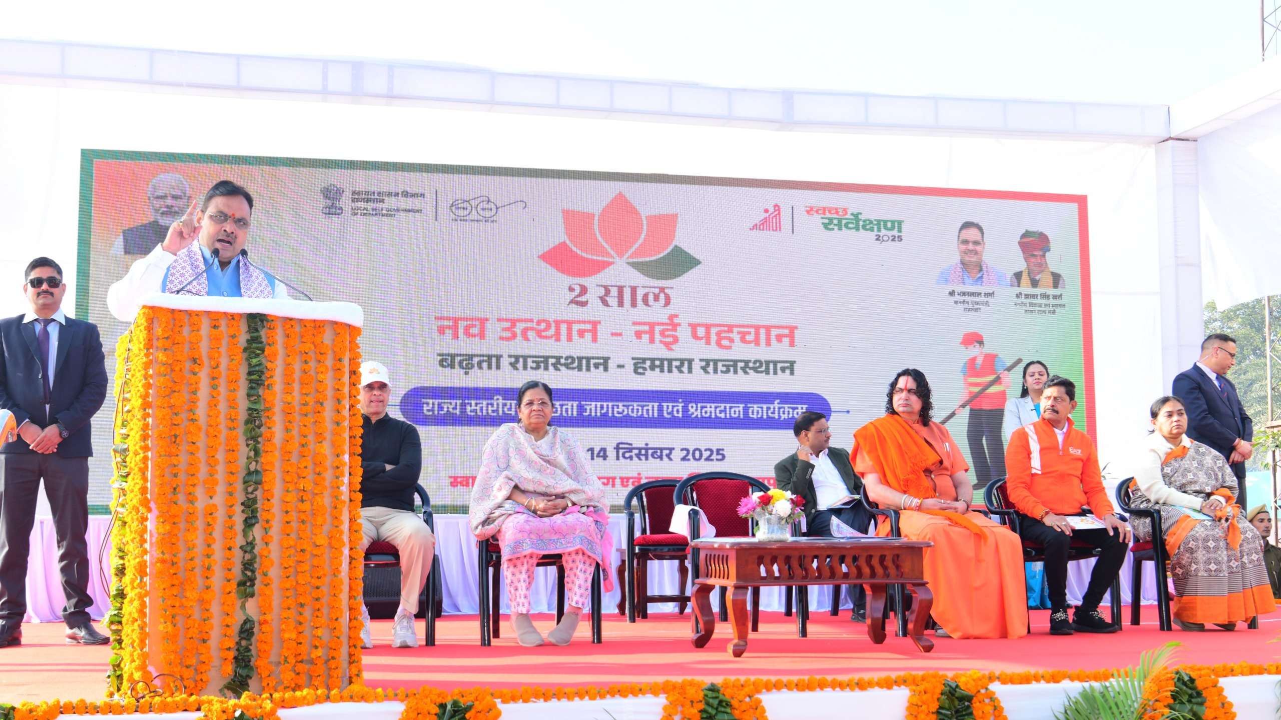जयपुर, 14 दिसम्बर। मुख्यमंत्री भजनलाल शर्मा ने कहा कि स्वच्छता समाज और सरकार की साझा जिम्मेदारी है तथा राज्य सरकार प्रदेश को स्वच्छ और सुन्दर बनाने के लिए प्रतिबद्धता के साथ कार्य कर रही है। उन्होंने कहा कि आमजन स्वच्छता योद्धाओं का सम्मान और सहयोग कर इनका मनोबल बढ़ाएं ताकि ये स्वच्छता की मुहिम में और तेज गति से कार्य कर सकें। उन्होंने आह्वान किया कि पर्यावरण को स्वच्छ बनाए रखने के लिए सिंगल यूज प्लास्टिक का उपयोग नहीं करें। शर्मा रविवार को जल महल की पाल पर आयोजित राज्य स्तरीय स्वच्छता जागरूकता एवं श्रमदान कार्यक्रम को संबोधित कर रहे थे। उन्होंने कहा कि जल महल हमारी गौरवशाली सांस्कृतिक धरोहर है। अपनी धरोहरों, सार्वजनिक स्थलों को स्वच्छ बनाए रखना हर जिम्मेदार नागरिक का कर्तव्य है। उन्होंने कहा कि स्वच्छता और स्वच्छ पर्यावरण के लिए सिंगल यूज प्लास्टिक का उपयोग एक बड़ी चुनौती है। इसी क्रम में राज्य सरकार प्रतिबंधित एकल उपयोग प्लास्टिक की रोकथाम के लिए एक्शन प्लान लेकर आई है।
