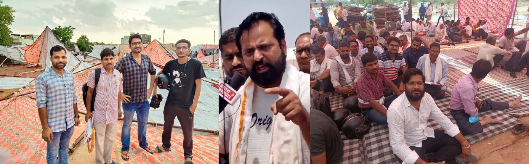 40 दिन से जयपुर के शिप्रा पथ मैदान पर हड़ताल कर रहे अधीनस्थ मंत्रालय कर्मचारियों को गुरुवार को दूसरी बार आए तूफान और बरसात तबाही झेलनी पड़ी और टेंट को भारी नुकसान हुआ। इसके बावजूद भी कर्मचारी अपनी मांगों को लेकर हड़ताल पर हैं कर्मचारियों का कहना है कि वर्ष 2013 में मुख्यमंत्री रहते हुए अधीनस्थ मंत्रालय कर्मचारियों को जो वेतनमान दिया था वह तत्कालीन मुख्यमंत्री वसुंधरा राजे ने वापस छीन लिया था। वेतन वेकेशन जातियों का मामला काफी समय से लंबित है इसके बावजूद भी सरकार कोई सुनवाई नहीं कर रही है।
