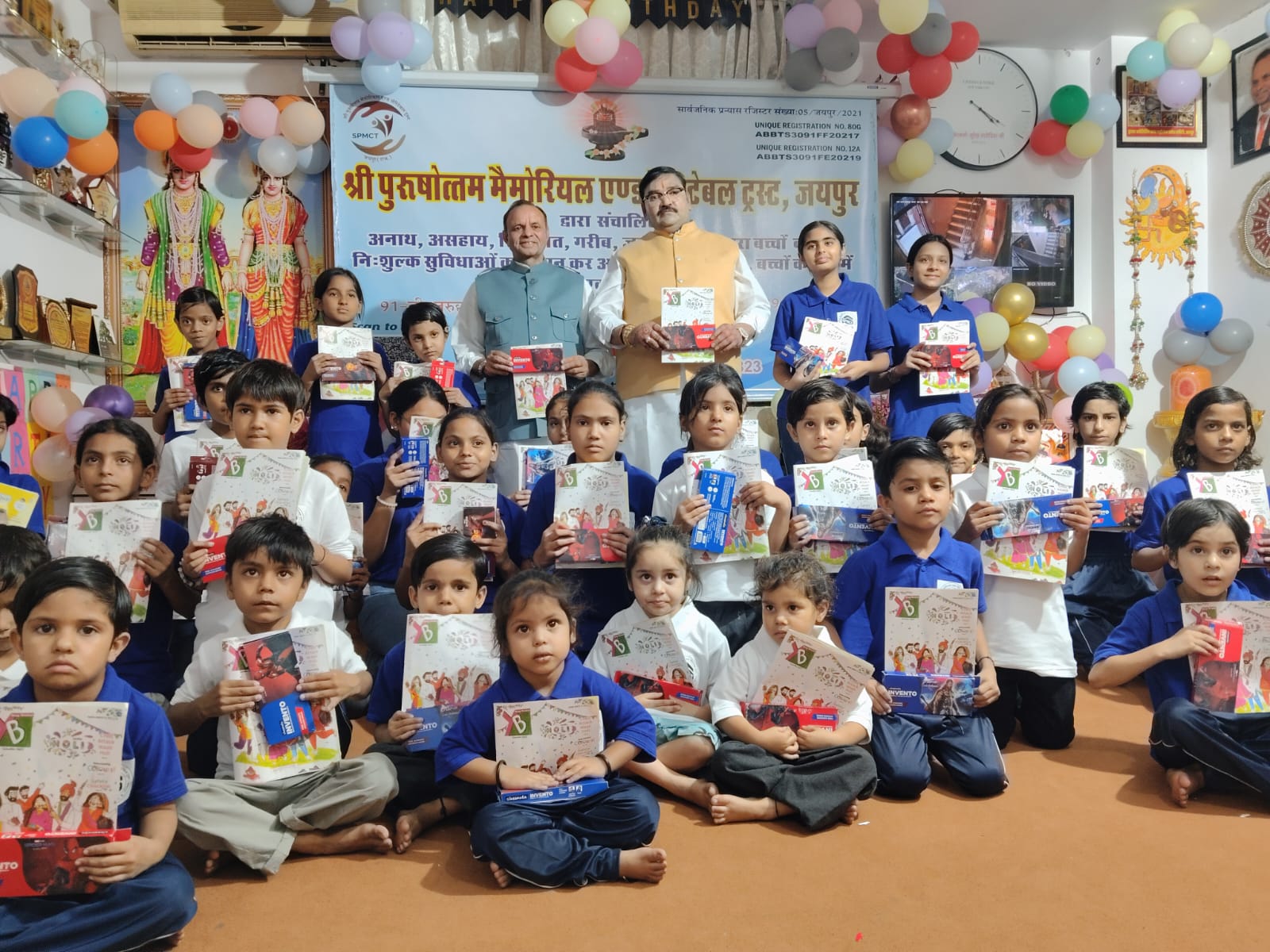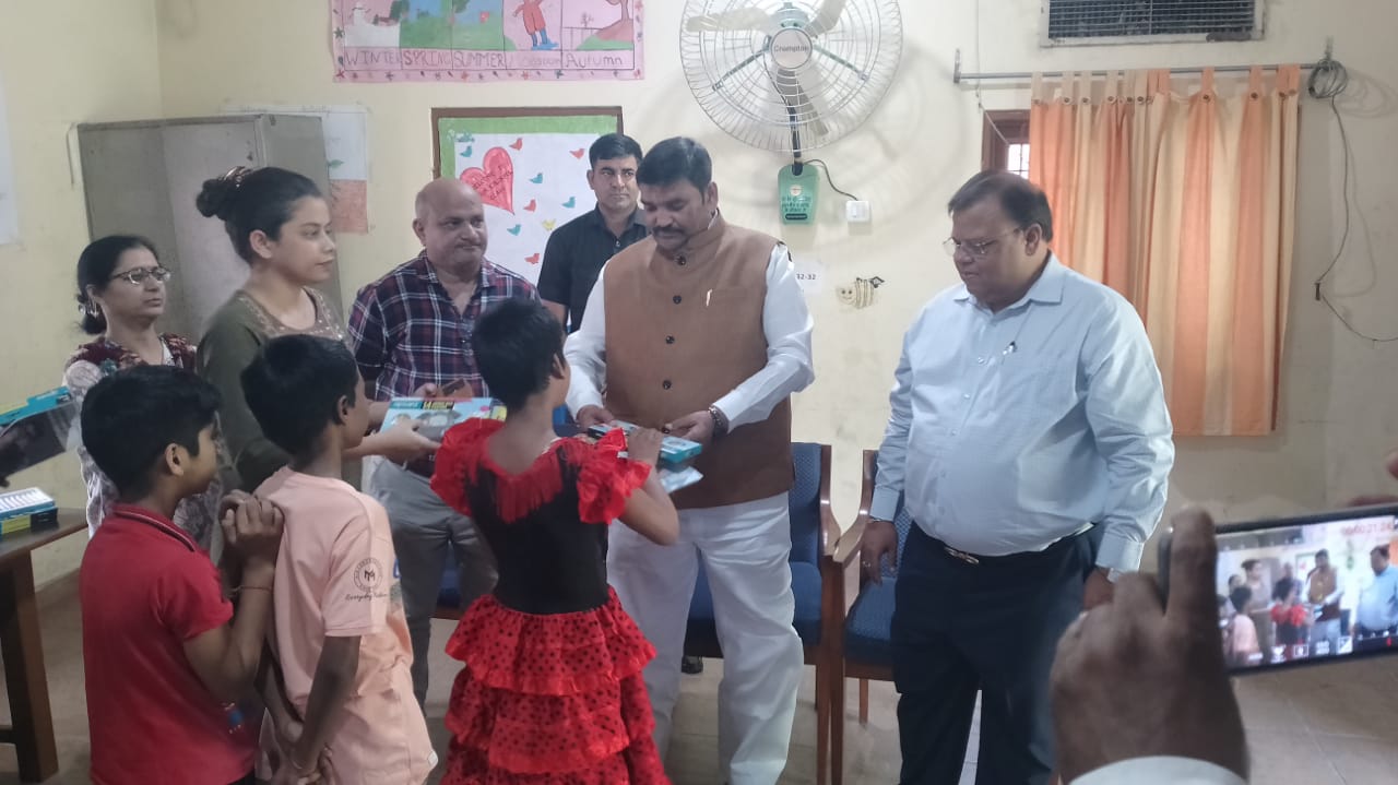 बच्चों को सोनल सलोनी माहेश्वरी चैरिटेबल ट्रस्ट ने बाटी बाल भास्कर मैगजीन और ज्योमेट्री बॉक्स