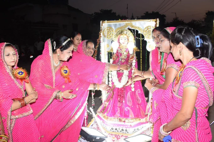 शहर के बालचंद पाड़ा स्थित एक टाकीज के परिसर से नगर परिषद सभापति मधु नुवाल द्वारा विधिवत पूजा-अर्चना के साथ शोभायात्रा रवाना हुई। सवारी में शामिल बैंड गीतों की मधुर धुन बिखेर रहे थे। सबसे आगे ध्वज पताका लिए घुड़सवार चल रहा था। पीछे सजे धजे ऊंट चल रहे थे। लोकगीतों पर नृत्य करते लोक कलाकारों ने राजस्थानी संस्कृति की छटा बिखेरी। सजी-धजी पालकी में विराजमान तीज माता के दर्शनों के लिए लोग सडक़ों पर जमा रहे। शोभायात्रा शहर के प्रमुख मार्गों से होते हुए कुंभा स्टेडिय़म पहुंची। शोभायात्रा के हर नजारे को देखने के लिए छतों तक पर लोग जमा थे। शोभायात्रा में बाबा बलवंत ङ्क्षसह का रथ शामिल था। इसके आगे 20 घुड़सवार ध्वज लेकर चल रहे थे। शोभायात्रा में एक सुसज्जित विमान में श्रृंगारित कजली तीज माता पालकी में विराजमान थी। विदेशी पर्यटक के साथ आमजन भी शोभायात्रा के हर नजारे को कैमरे में कैद करता हुआ नजर आया। इस दौरान उप सभापति लटूर भाई, पूर्व प्रधान भगवान नुवाल, कांग्रेस शहर अध्यक्ष शैलेश सोनी, पूर्व आयुक्त महावीर ङ्क्षसह सिसोदिया, वरिष्ठ पार्षद टीकम जैन, इरफान इल्लू, हेमंत वर्मा, प्रेमप्रकाश, विजय ङ्क्षसह गहलोत, बालमुकुंद सोनी, संदीप देवगन, जितेंद्र मीणा, जितेंद्र दाधीच, ममता शर्मा, मोनिका शेरगढिय़ा, सूरज बिरला, संध्या रावल, राजकुमार दाधीच आदि मौजूद रहे।