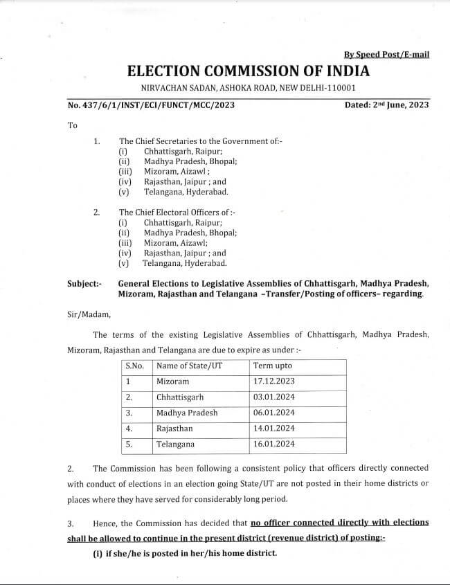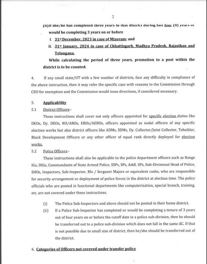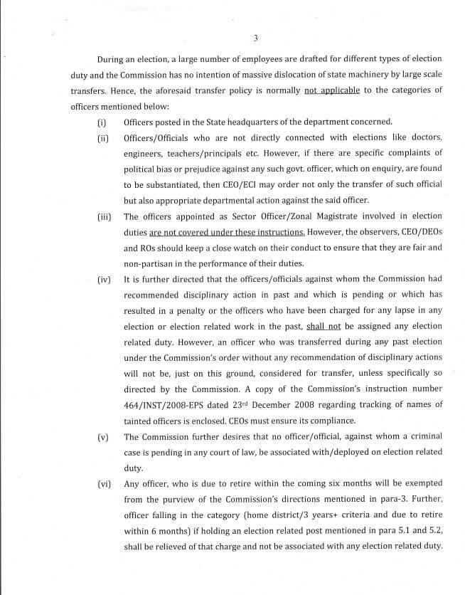 उन्होंने कहा कि निर्वाचन आयोग ने निर्देश जारी की वह इस प्रकार से है। निर्वाचन आयोग ने 3 साल तक एक ही सीट पर रहने वाले अफसरों को हटाए जाने का आदेश जारी किया है।