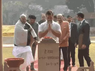 कांग्रेस नेता राहुल गांधी ने गांधी जी को भारत की आत्मा बताते हुए कहा, “सत्य, अहिंसा और निडरता की ताकत बड़े से बड़े साम्राज्य को हिला सकती है। पूरा विश्व उनके विचारों से प्रेरणा लेता है।”